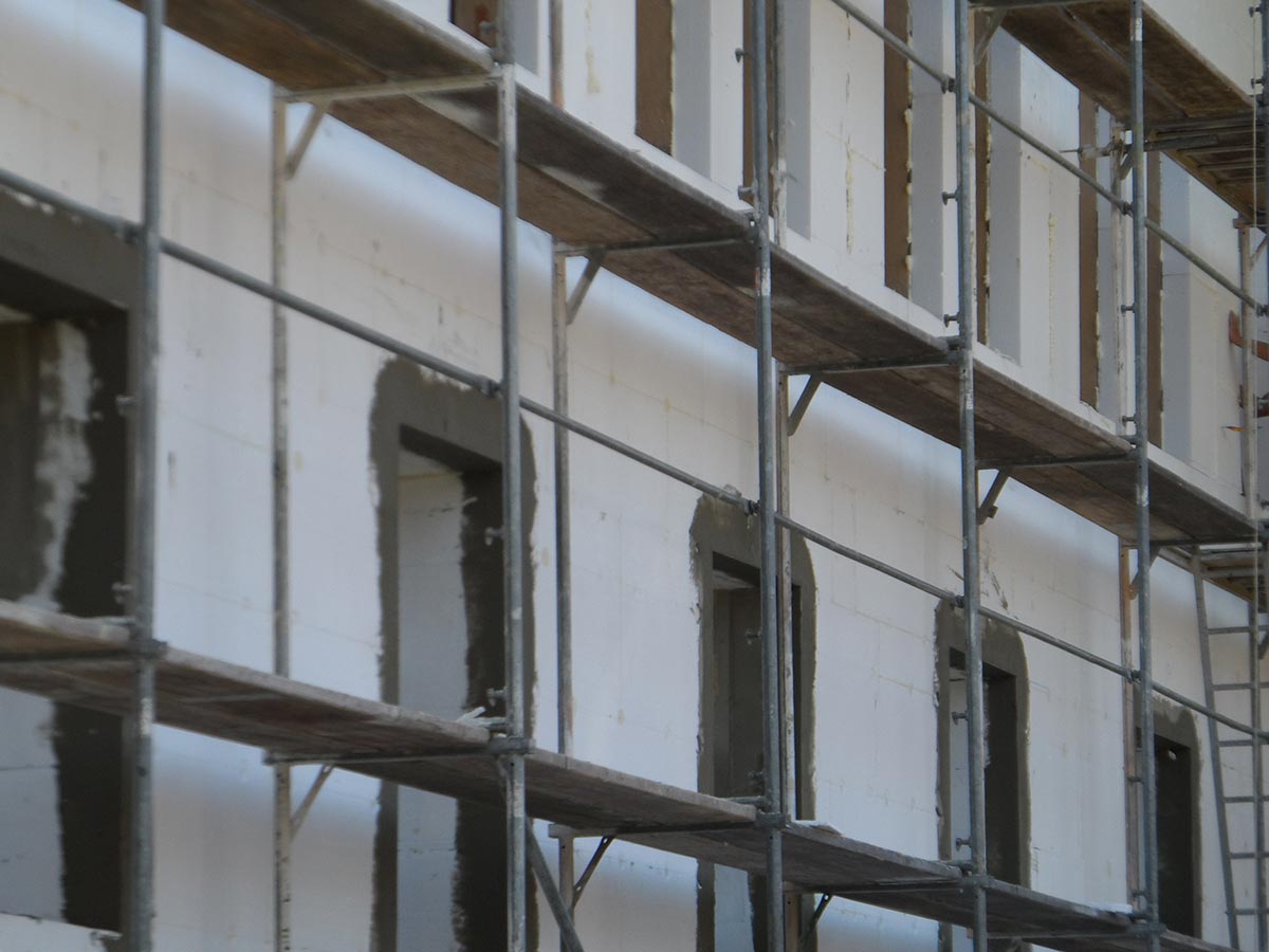 Komplettsanierung eines bestehenden Vollwärmeschutzes mit Silikonharzputz